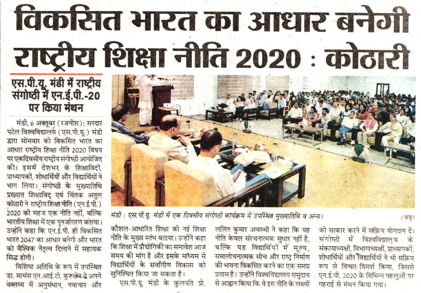 विकसित भारत का आधार बनेगी नई शिक्षा नीति :कोठारी